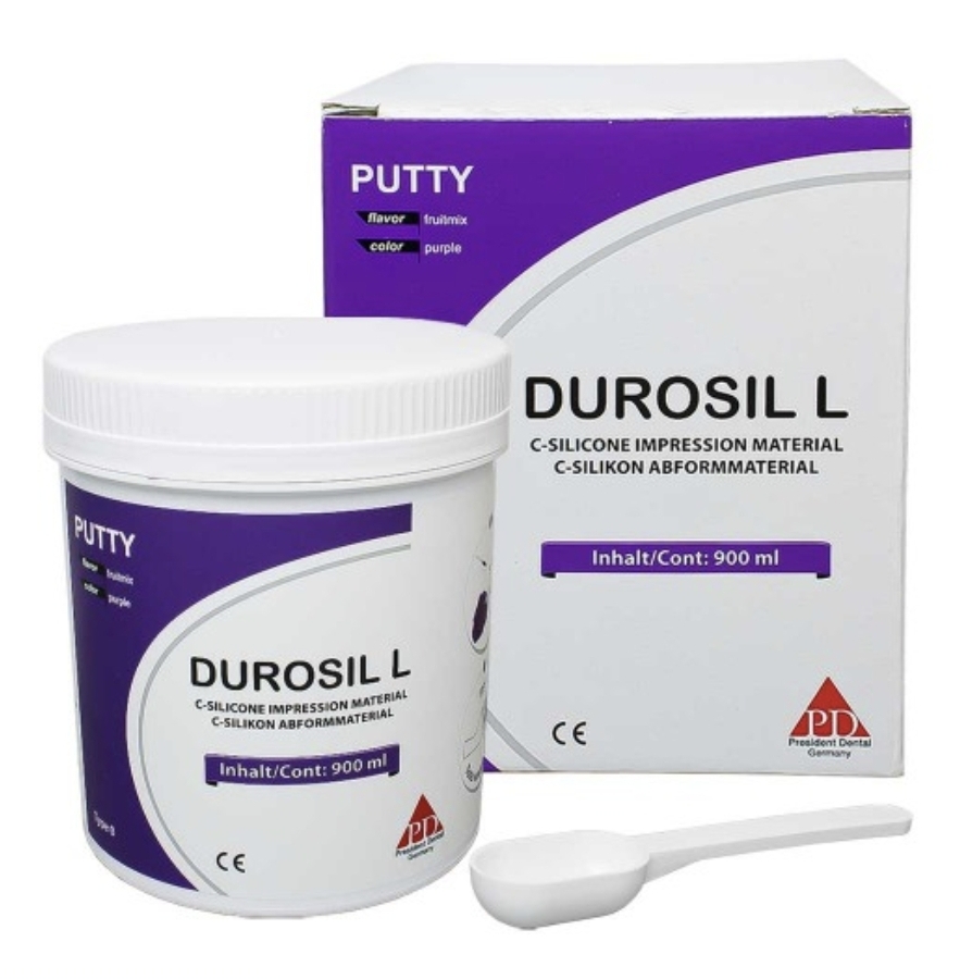 ست قالبگیری دوروسیل برند President Dental (PD) در بسته های حاوی Durosil L 900 میلی لیتری و Durosil S 140 میلی لیتری و Paste Hardener 60 میلی لیتری به همراه یک عدد قاشق عرضه می گردد.
