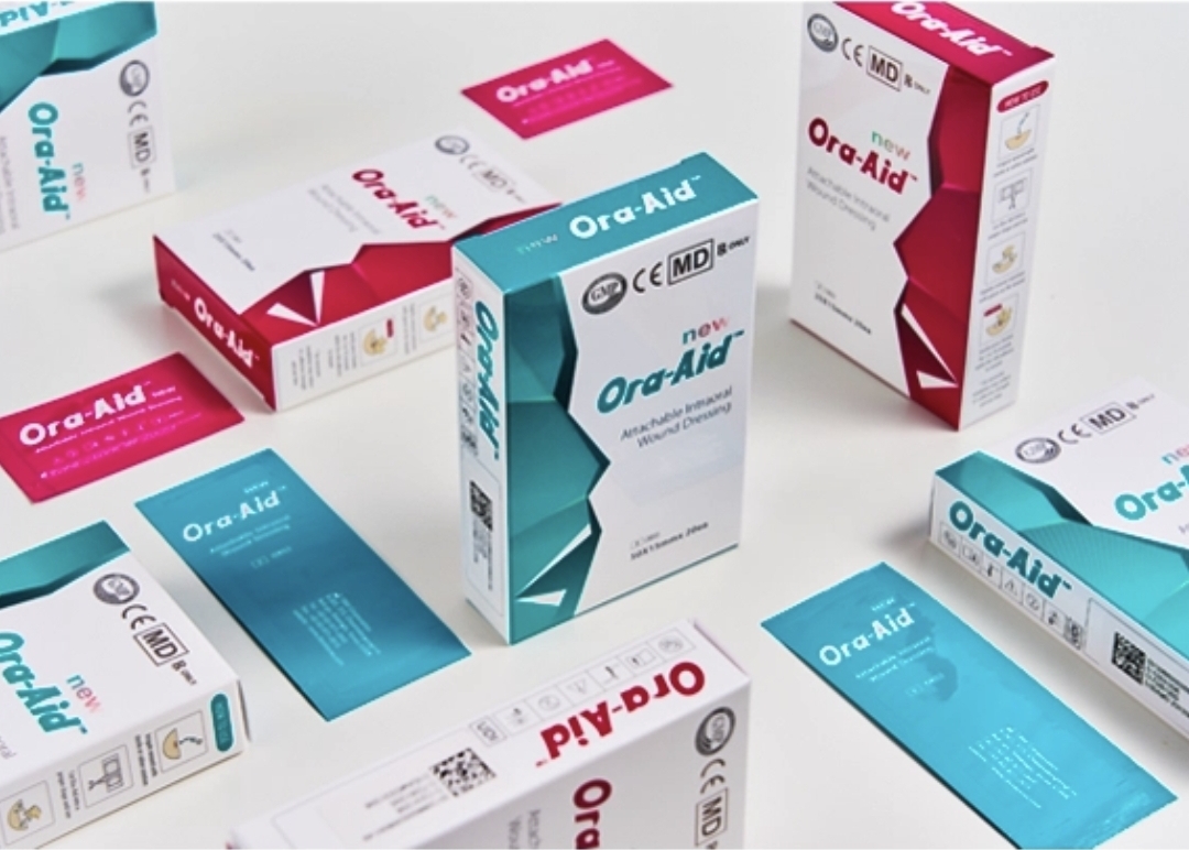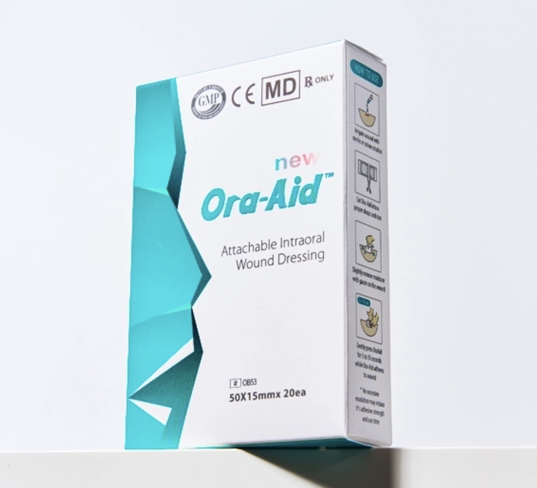 این محصول به منظور محافظت از زخمهای داخل دهانی در مقابل غذا، باکتری و دود سیگار و همچنین نواحی پس از جراحی (مانند بعد از کشیدن دندان عقل یا جراحیهای لثه) توسط کمپانی Ora-Aid تولید و عرضه شده است. از ویژگیهای حائز اهمیت آن میتوان به کاهش بوی بد دهان بوسیله داشتن طعم نعناع، محافظ زخمهای آفتی (زخمهای دهانی)، برش آسان به اشکال و اندازههای مختلف، چسبندگی مناسب با استفاده از پلیمر آبدوست (هیدروکسیاتیل سلولز)، محافظت از بخیه در برابر برخورد زبان، کاهش سوزش زخم، استفاده آسان و ایمن، کمک به هموستات و دارا بودن ویتامین E اشاره کرد.