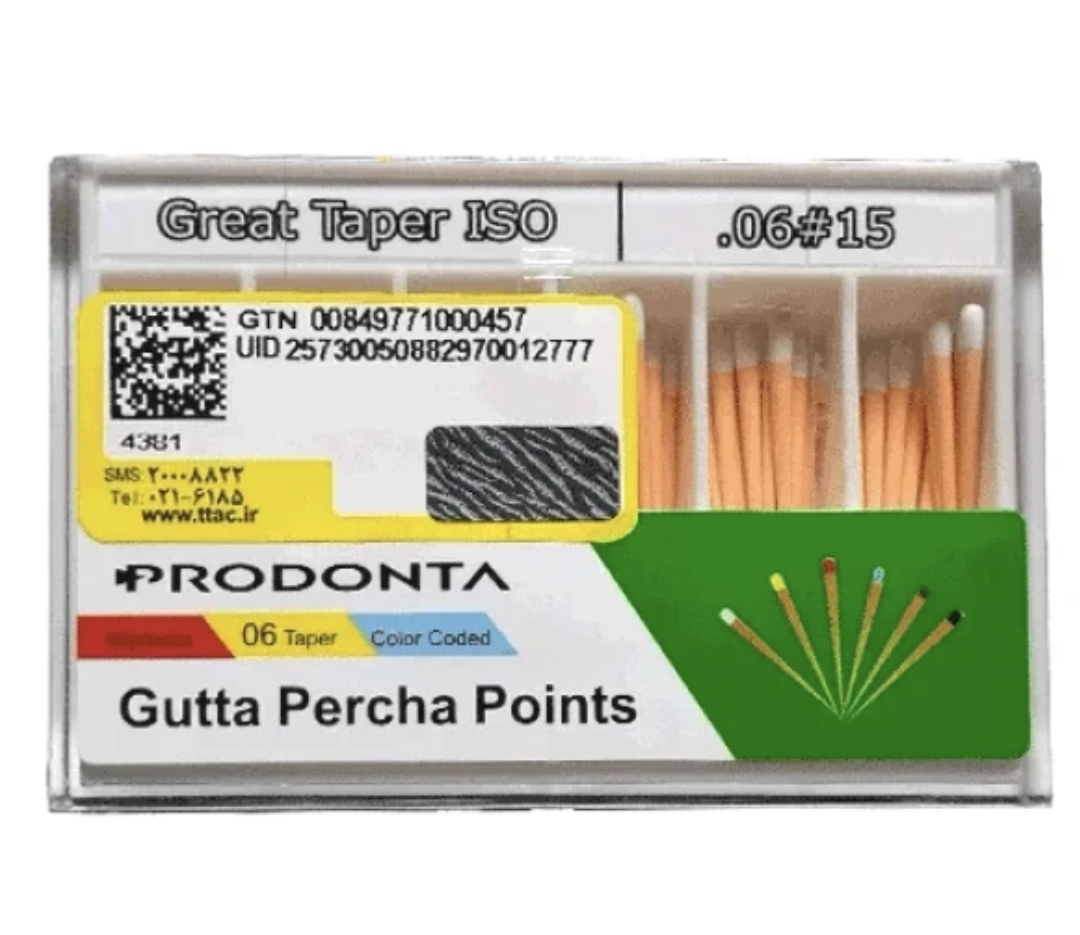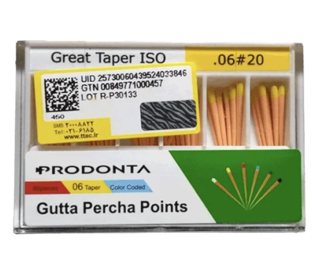 گوتا پرکا 6% برند چینی Prodonta با سایزبندی 15 ,20, 25, ,30 در فروشگاه اینترنتی دنت بازار عرضه میگردد.