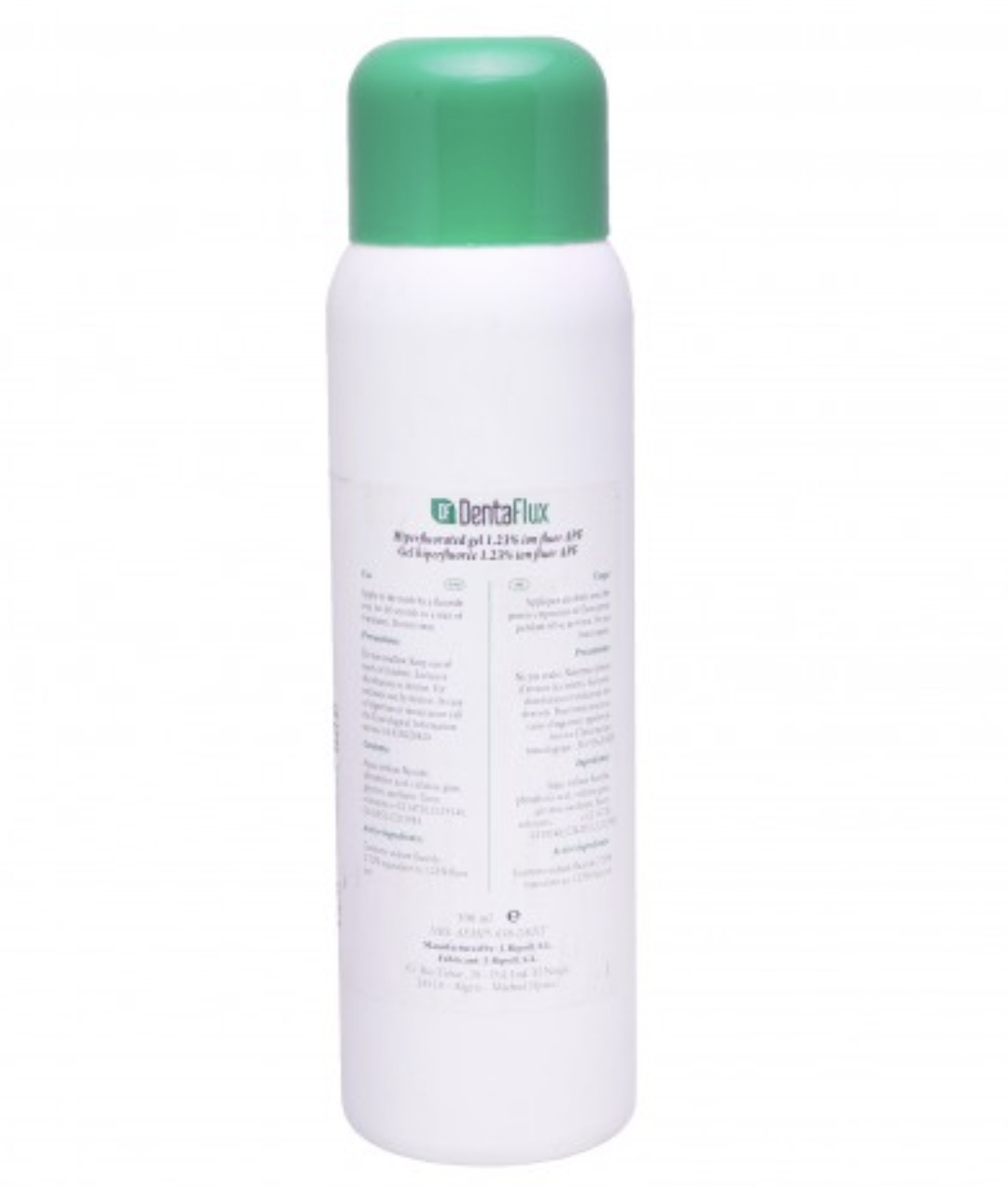 ژل فلوراید برند دنتافلاکس در حجم 500 میلی لیتر و طعم های پرتقال، نعناع، لیمو عرضه می گردد.