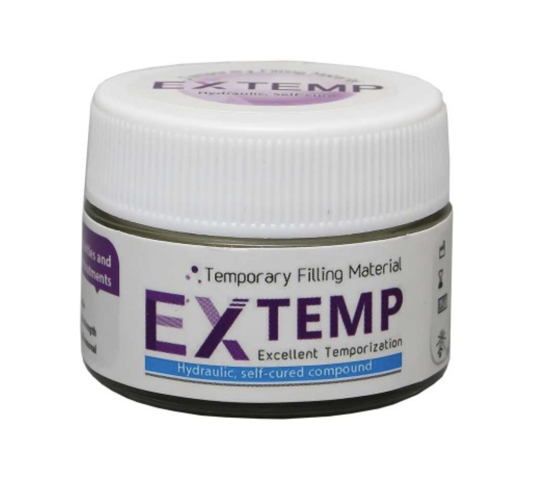 ویژگی های خمیر پانسمان - EXTEMP Temporary Filling: - رادیواپک - تقویت شده با رزین - فاقد اوژنول، بوی نامطبوع - چسبندگی مطلوب به عاج - بدون میکرولیکیج (ریز نشت) - استحکام و گیرش تقویت شده - عمق کیور مطلوب و کیورینگ بدون تخلخل - محتویات بسته: 4 قوطی 40 گرمی